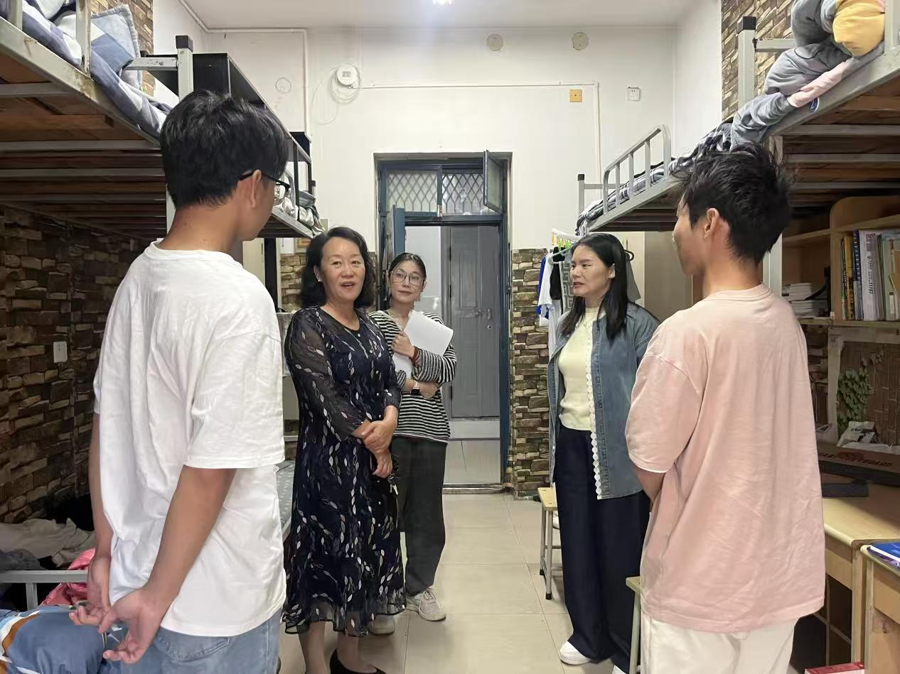 国庆、中秋双节来临,为深入了解在校学生的学习、生活情况,传递书院的温暖关怀,蓝天书院直属党支部书记许晓丽、院长申晓晶携值班辅导员每日深入学生宿舍,开展留校学生慰问活动。