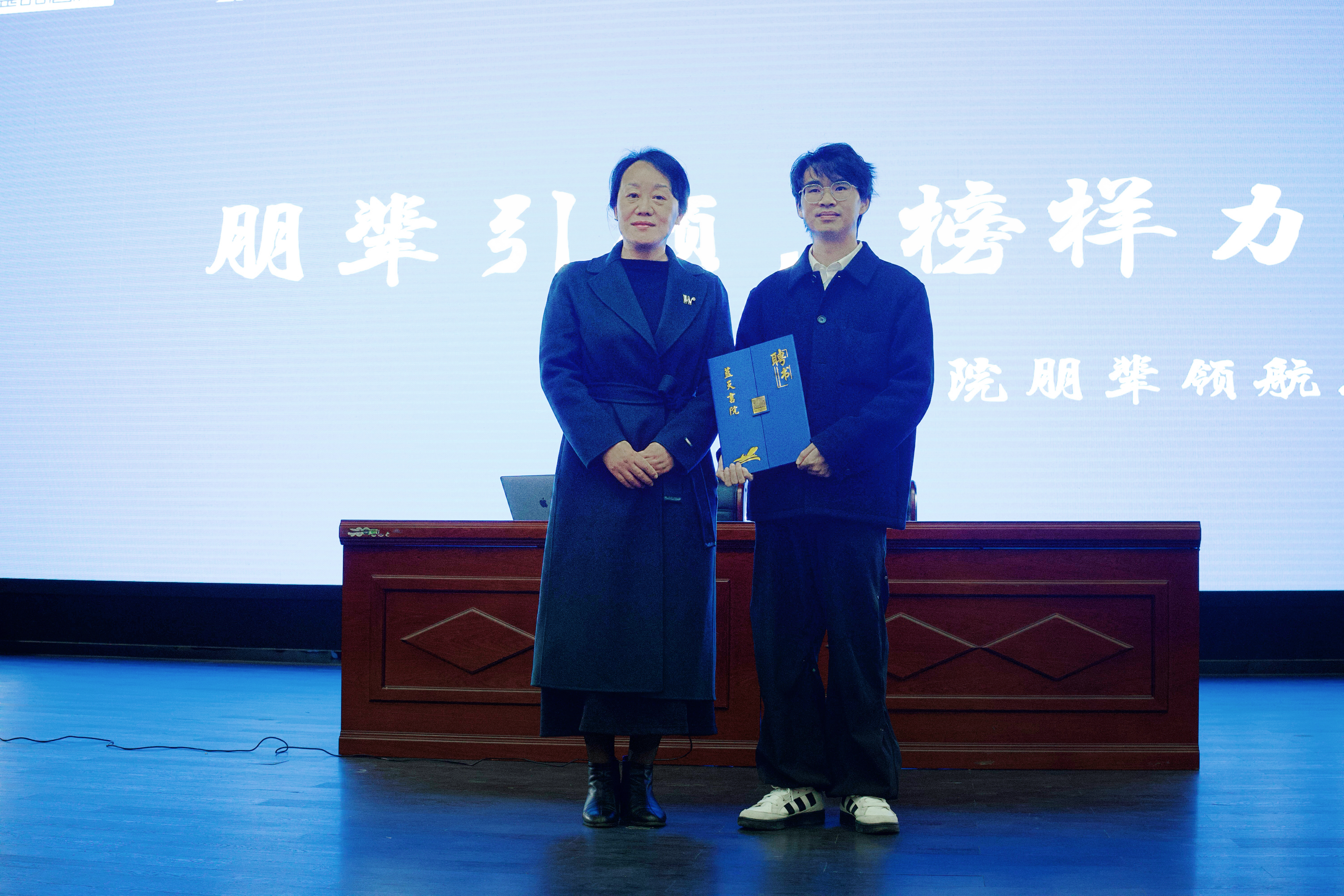 活动伊始,许晓丽书记为凌真诚同学颁发朋辈导师聘书,正式聘任其为蓝天书院朋辈导师,希望他以亲身经历为新生点亮成长之路,持续传递奋进力量,助力书院学风建设走深走实。