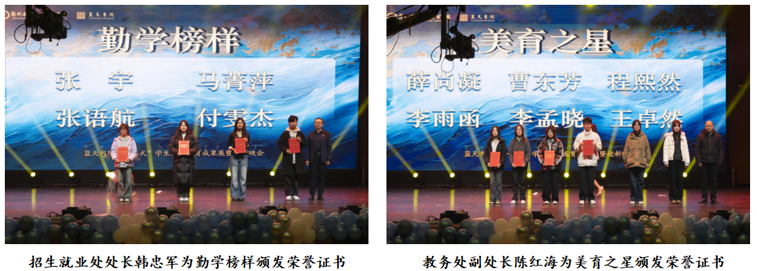此次活动分为成果表彰、文艺展演两大部分,全方位、多层次展现蓝天书院德育、智育、体育、美育、劳动教育协同育人的实践成果。