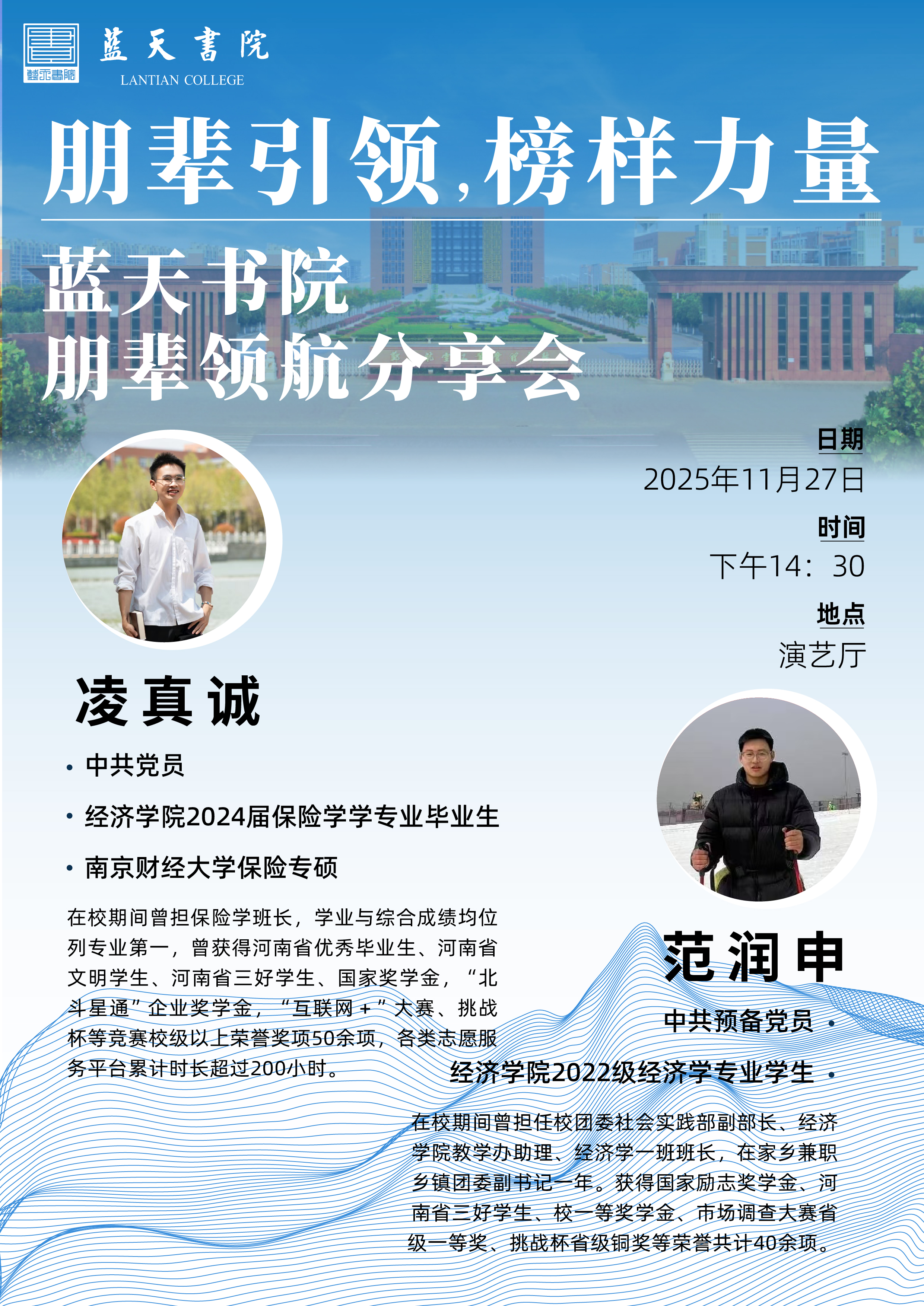 讲座题目:朋辈领航,榜样力量---蓝天书院朋辈领航分享会
