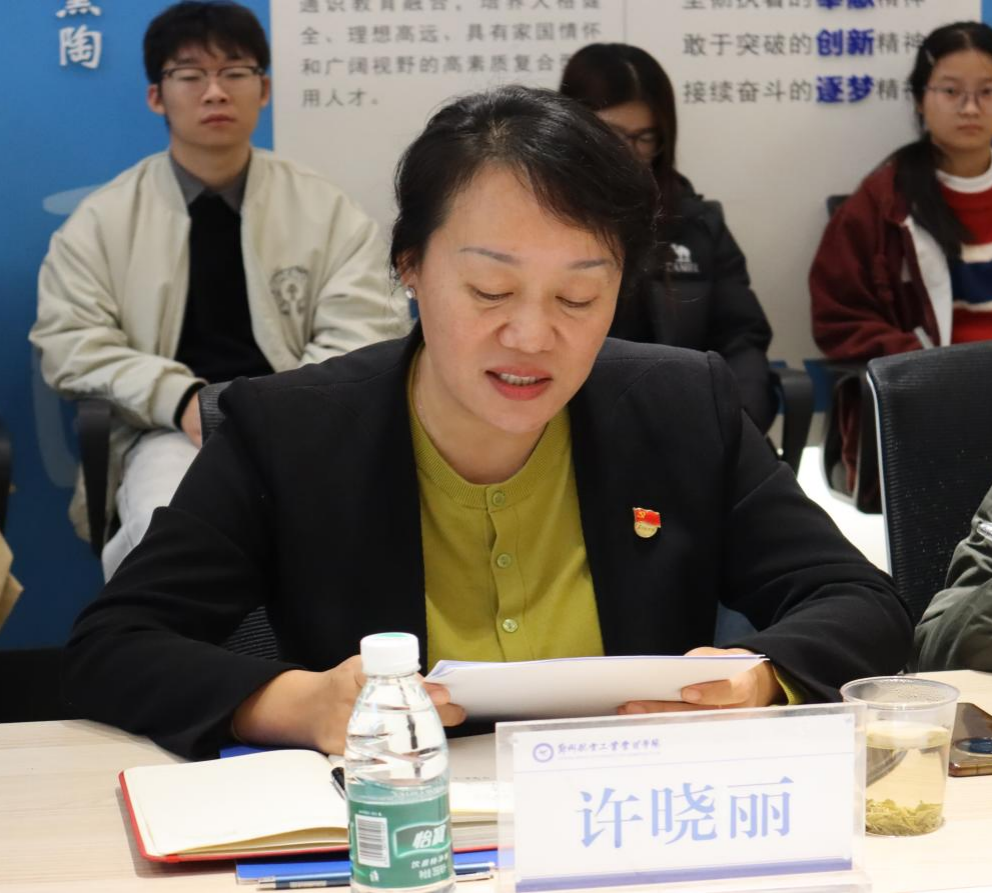 随后,许晓丽代表蓝天书院直属党支部从书院整体情况、存在的问题及原因分析和今后的努力方向三个方面汇报了书院工作。