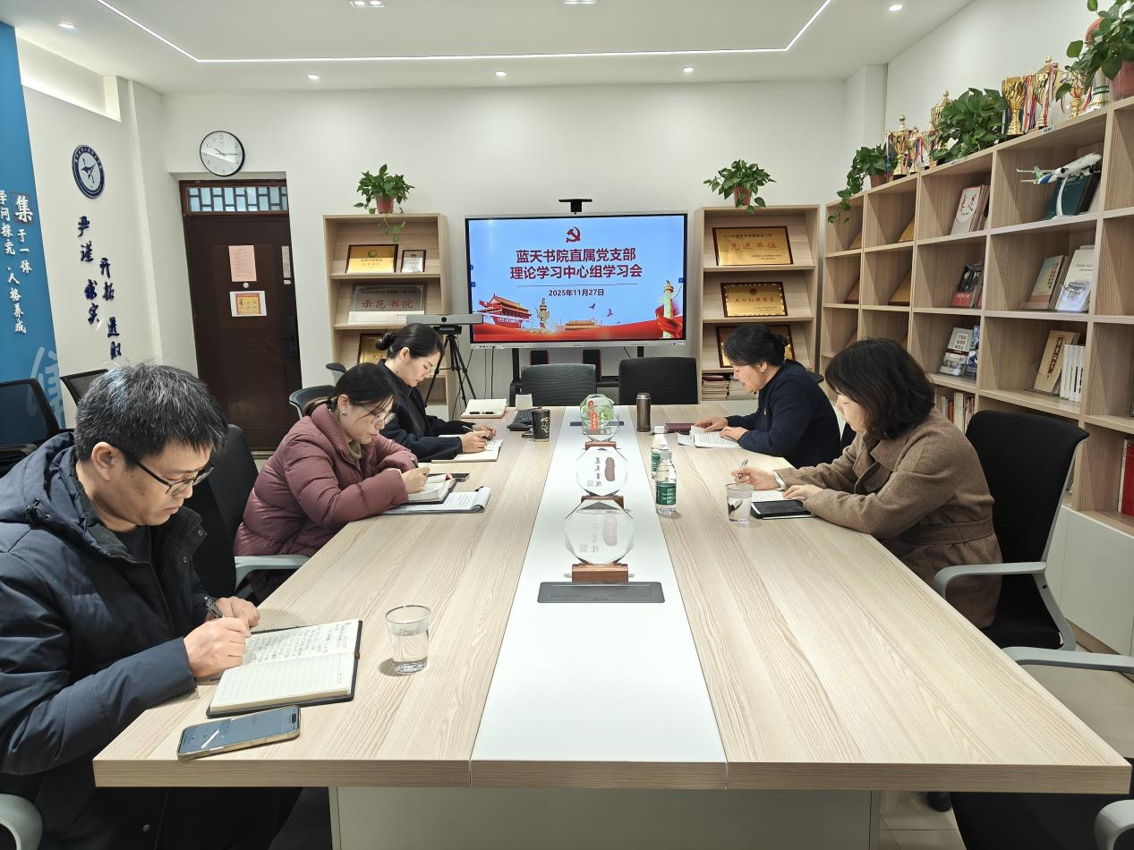 11月27日上午,蓝天书院直属党支部理论学习中心组在07C415会议室召开集体学习会,专题学习党的二十届四中全会精神。中共郑州航空工业管理学院第五届委员会第二巡察组副组长、党委教师工作部副部长、教师发展中心副主任耿三琳,第二巡察组成员魏建立列席会议,书院党支部理论学习中心组成员全员参会,会议由党支部书记许晓丽主持。